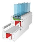 Tepelně izolovaný systém montáže oken a dveří, dvoukomorový (okna) nebo tříkomorový (dveře), kromě tradičních funkcí R, U, R/U existuje možnost projektování oken otevíraných a vyklápěných ven – v tom případě je pro tento typ oken nezbytné použití speciálních nůžkových ramen.